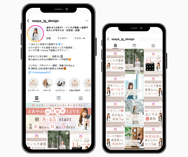 ・文字入りデザインと写真投稿を交互に配置することで、統一感を出すとともに、整った印象で信頼感もアップ