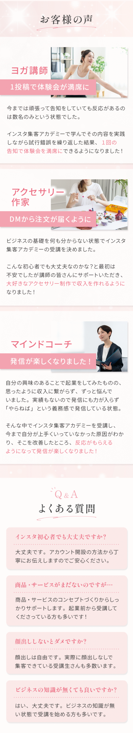 Instagram運用では、自ら講師を務める集客講座を開講し、個人事業主から企業まで幅広くサポート。さらに、自身でもサービスを企画・運営し、ビジネスの現場で実践を重ねています。